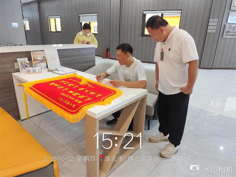 瀾悅府29棟502號(hào)業(yè)主在完工后冒雨送來錦旗,對(duì)設(shè)計(jì)師施楊予以“設(shè)計(jì)精心”的贊譽(yù),